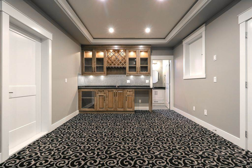 - Entertainment Bar Area with built-in cabinetry, glass shelving, and a wine rack for hosting